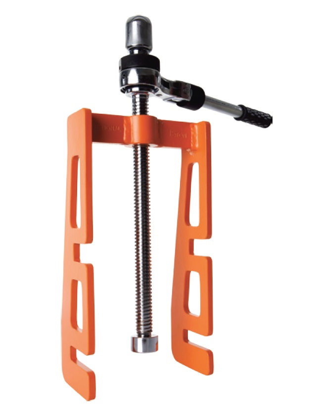 After inserting the jaw opening of the press into the end part of the section steel flange, completely tighten the fixing bol.t Then push up or down the pawl according to purposes and operate the handle.