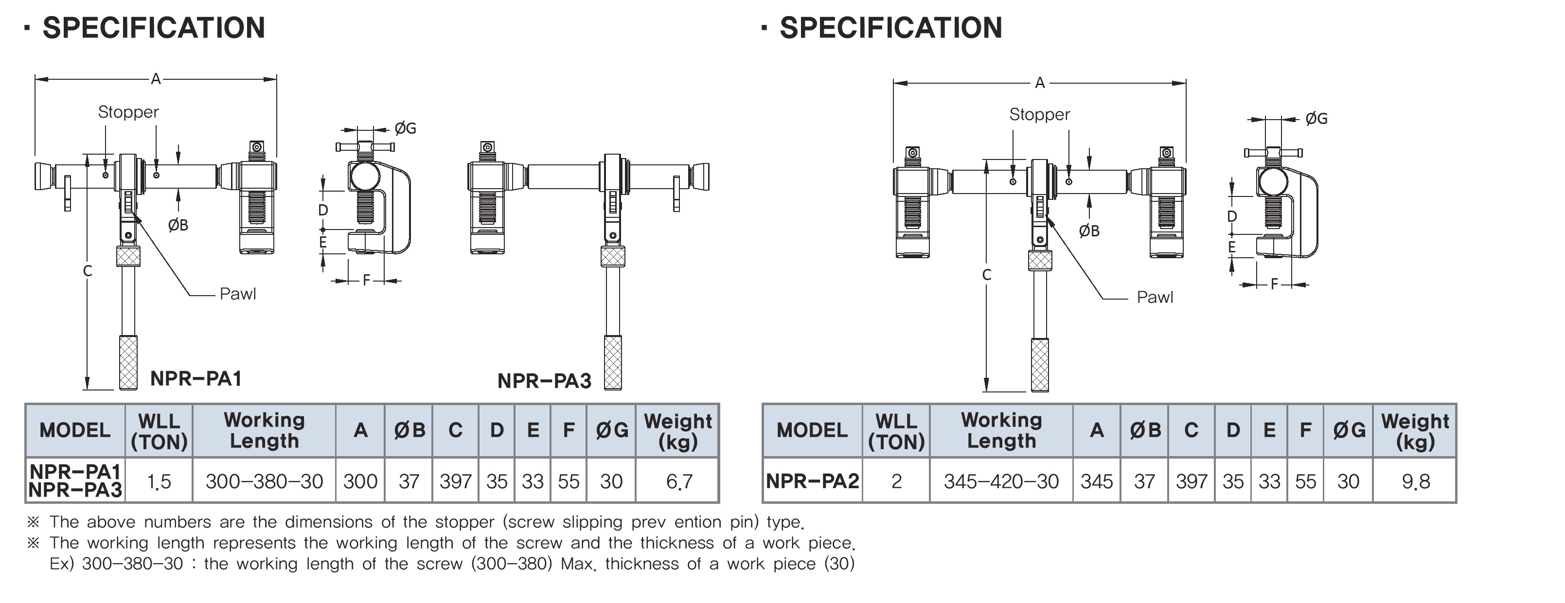 The NPR-PA2 is used in attaching two work pieces on a flat work plate by pulling or in widening the interval of work pieces by pushing.