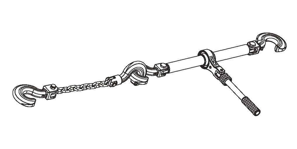 Have a screw clamp bite both ends of a steel block to pull or fix, and insert the hook of the ratchet puller into the eye hole(shackle). Depending on purposes, push up or down the pawl, fix it and then operate the handle.