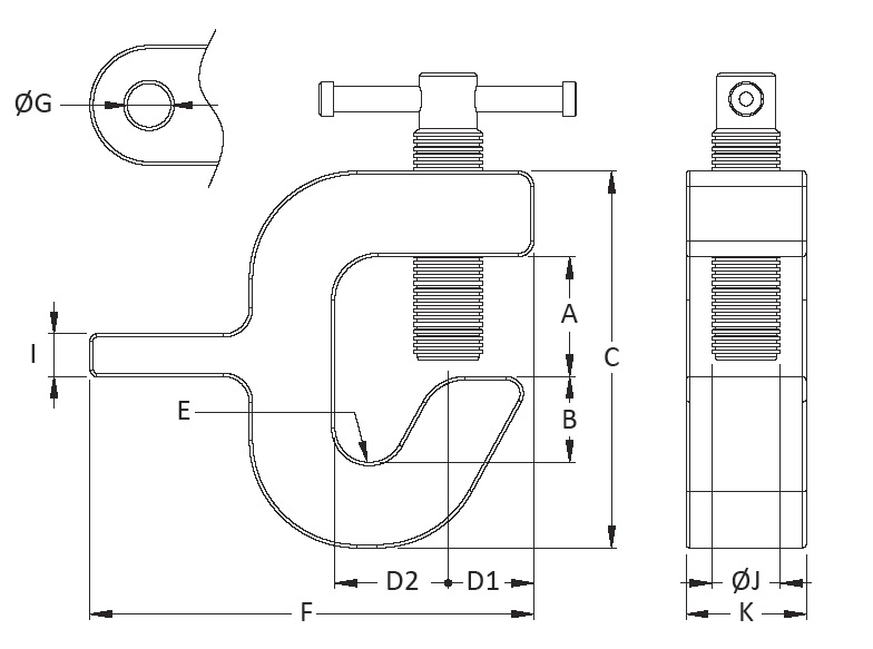 | WLL(TON) | Jaw Opening | A | B | C | D1 | D2 | E | F | øG | I | øJ | K | Weight (Kg) |