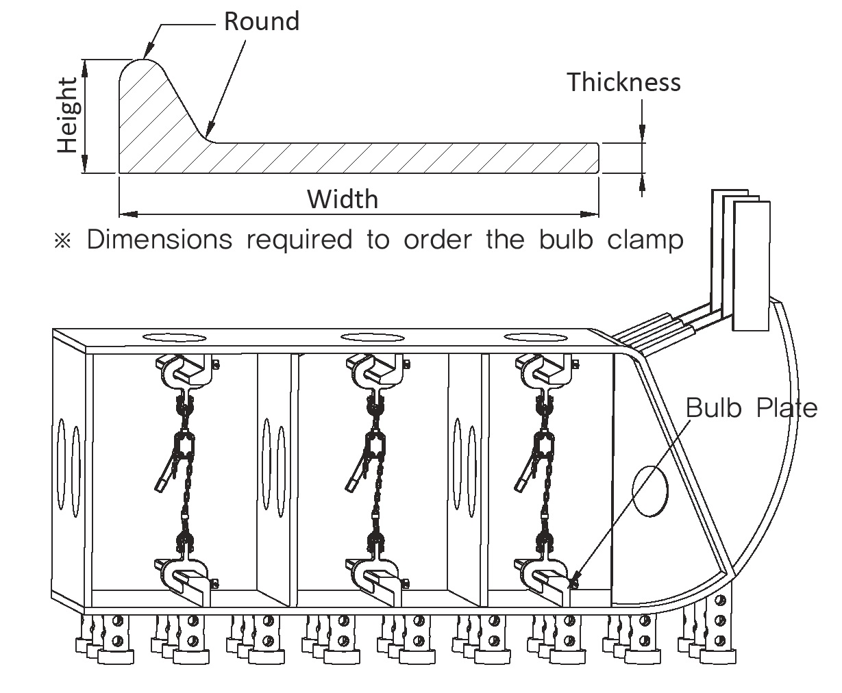 Insert the bulb of a bulb plate or the flange of an angle into the clamp's jaw opening and then completely tighten the screw.