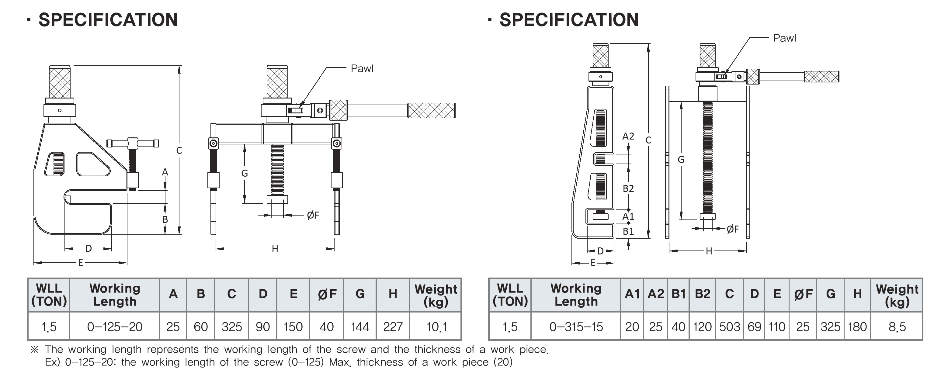 After inserting the jaw opening of the press into the end part of the section steel flange, completely tighten the fixing bol.t Then push up or down the pawl according to purposes and operate the handle.