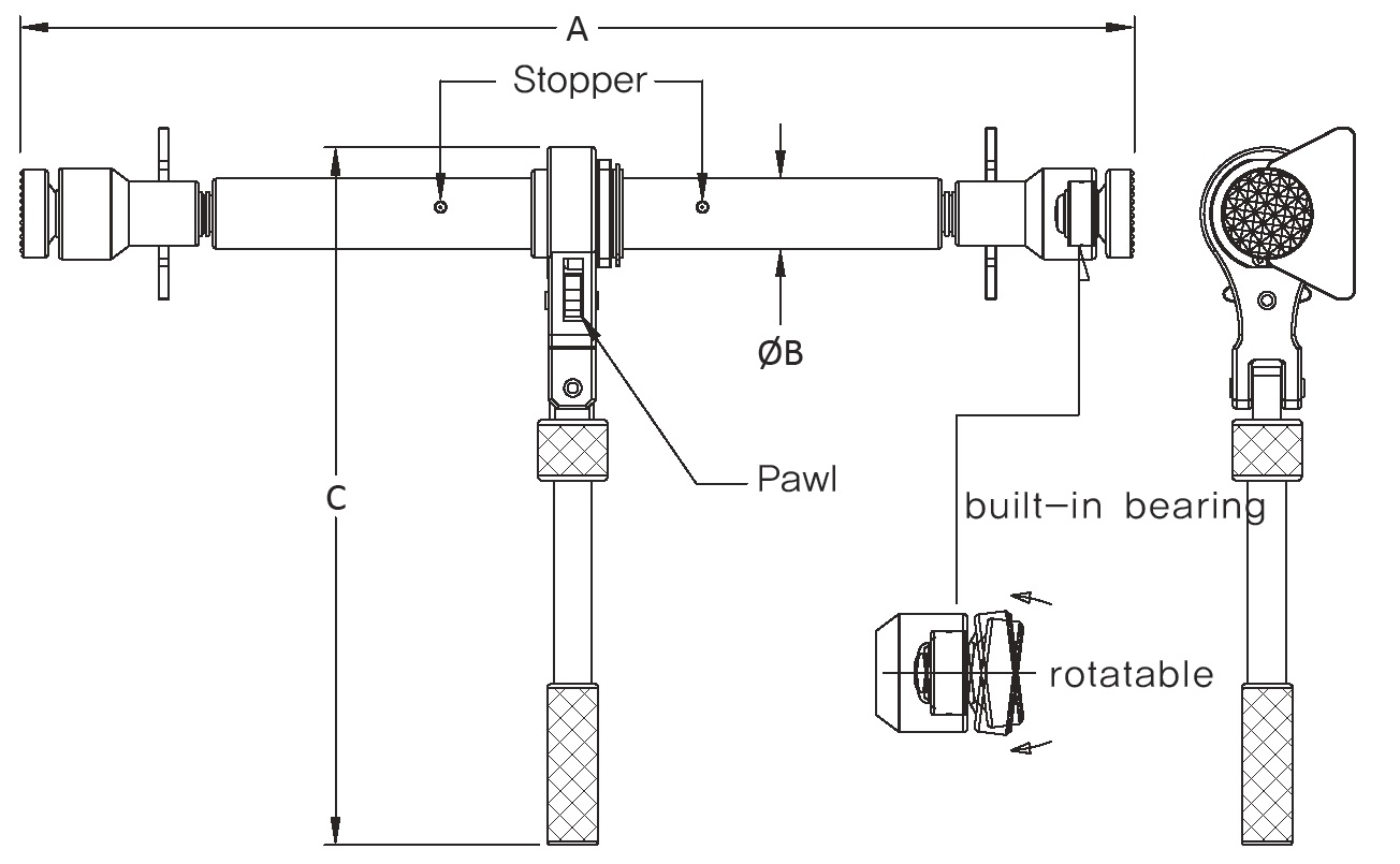 The NPR-C is a ratchet pusher used to adjust the interval of frames when attaching side frames to the outer plating and the inner bottom plating of a ship.