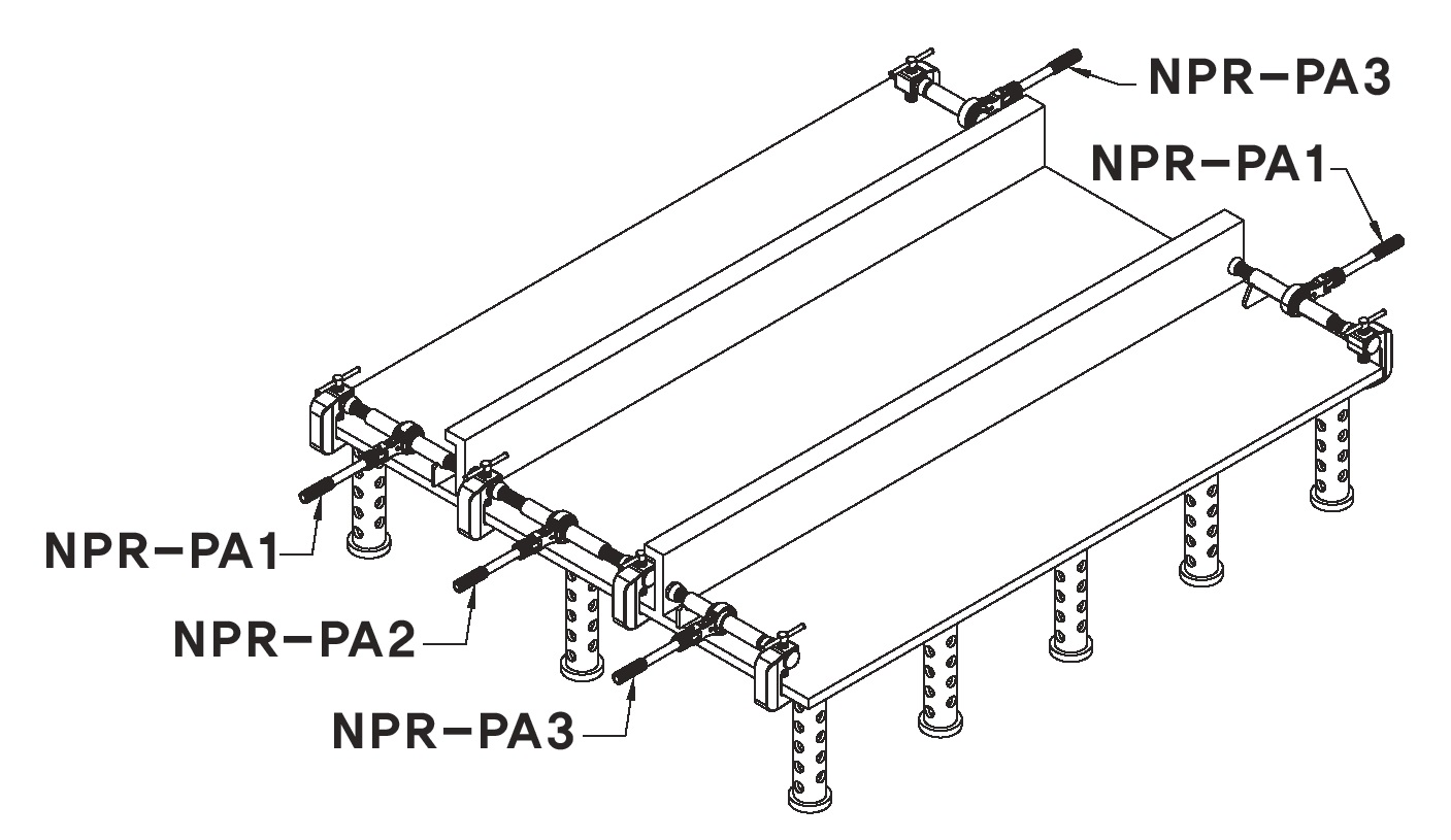 The NPR-PA is the combination of a ratchet pusher and a screw clamp and it is an efficient clamp shortening the multiple-step working process, leading to higher productivity.(Previous process: Fix the HYD'JACK. support piece to the inner plating by electric welding. Remove the piece after completing the work.)